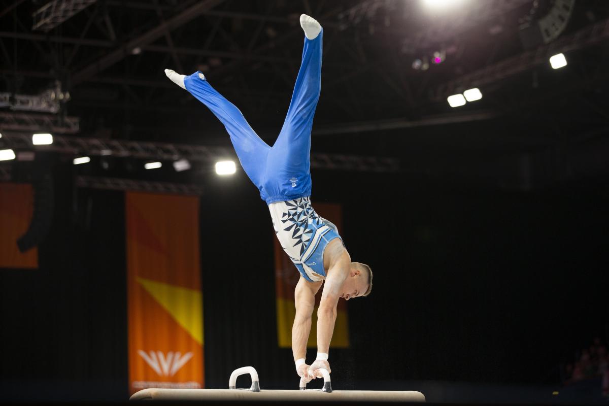 Pavel – a first time senior multi-sport competitor after competing at the Glasgow 2018 Junior European championships made an impact with his Commonwealth debut in the team final on Friday with his competition today starting on the pommel horse.